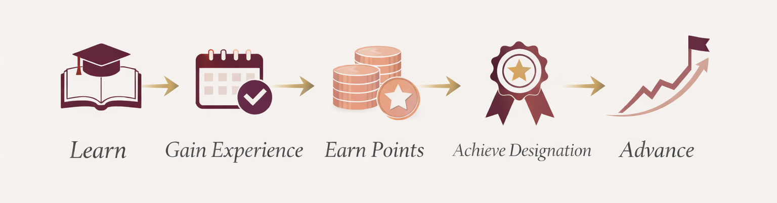 Your journey through ABC designations is supported by a structured points system that tracks your growth and involvement.