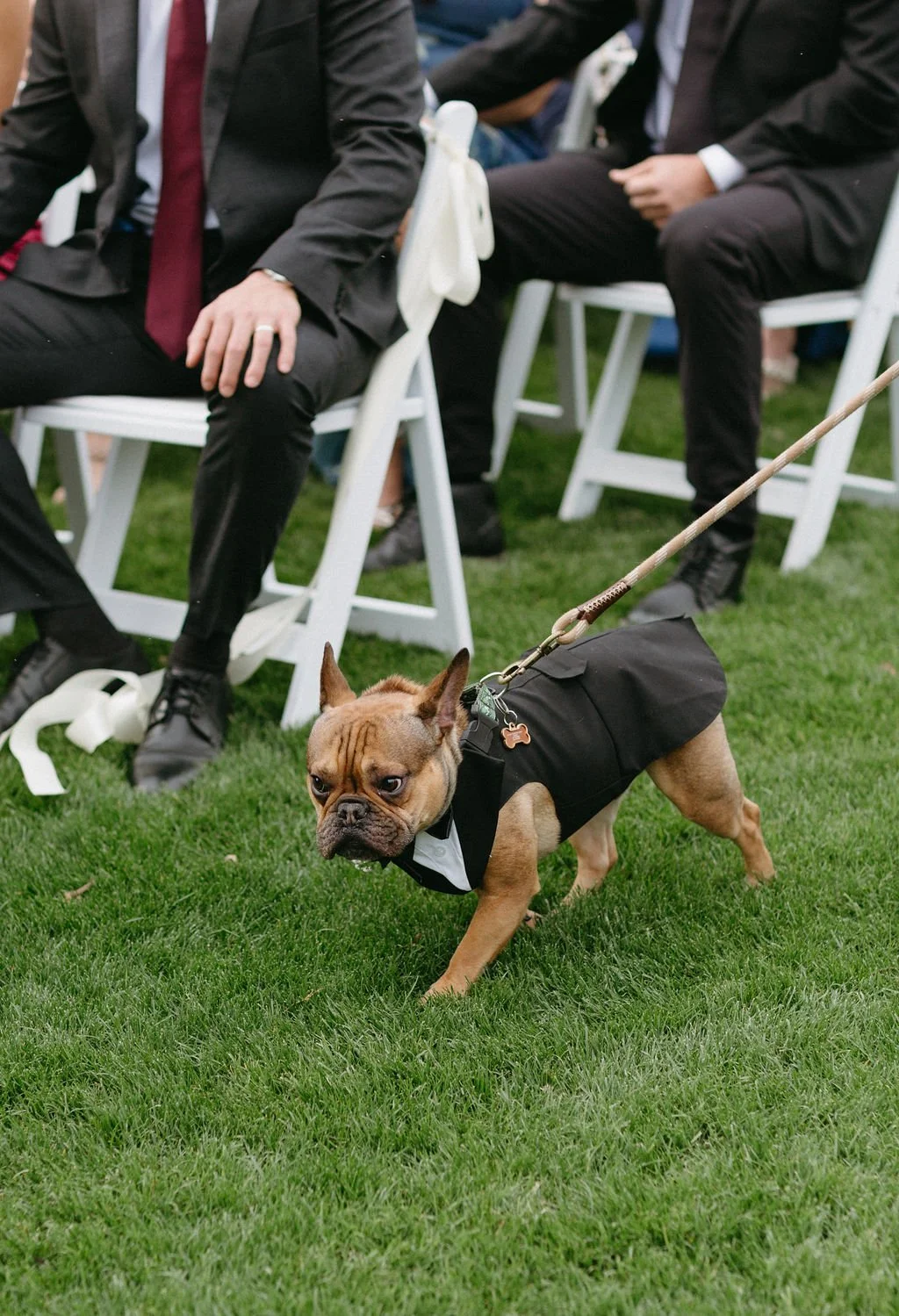 Set beneath a breathtaking tree at the back of Stockdale Country Club, the ceremony location was expansive. To create intimacy, the team curved the seating layout, drawing guests inward and framing the couple in a way that felt warm, intentional, and beautifully connected.A Beloved Pup in the Ceremony: